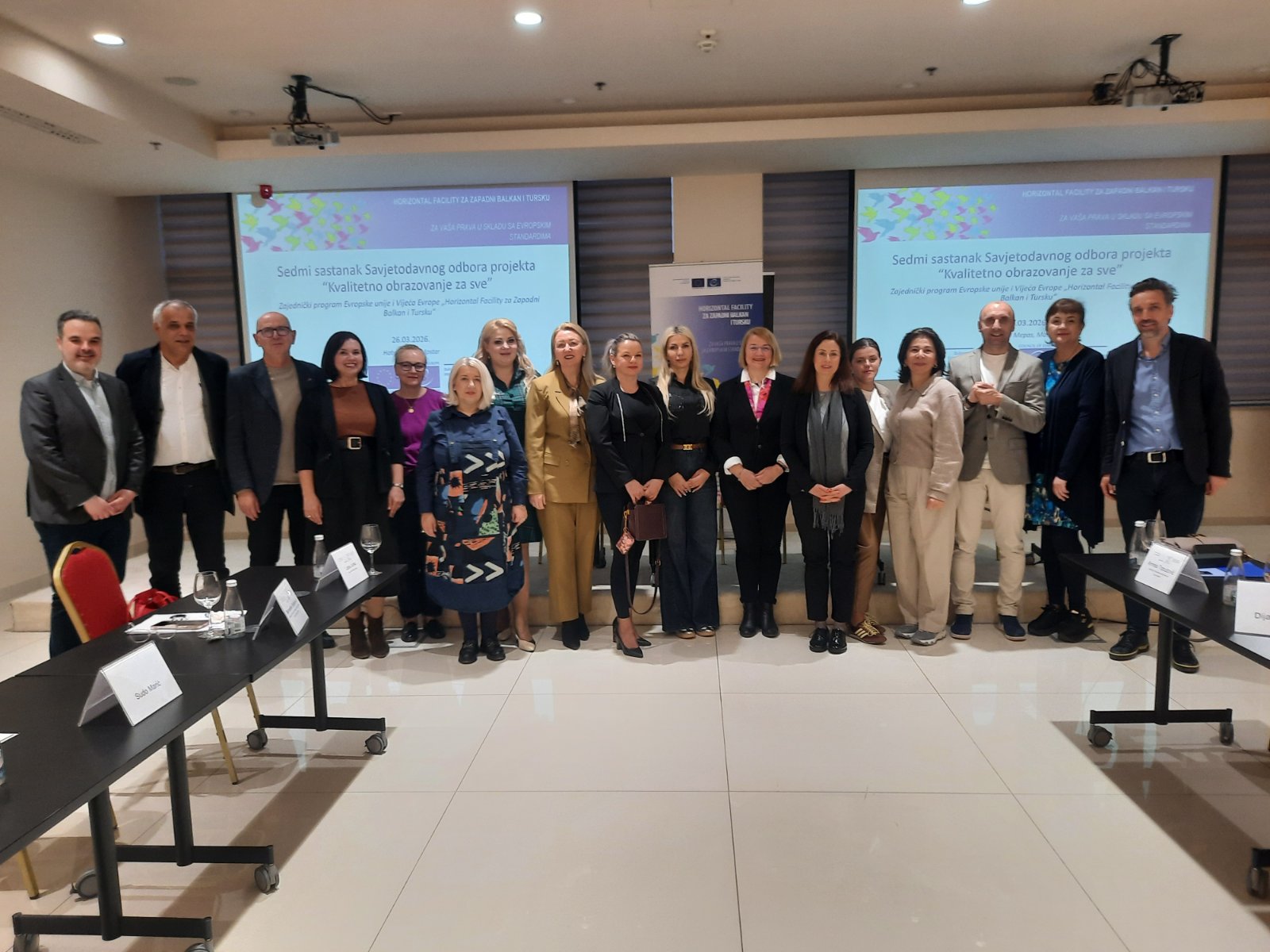 Sedmi sastanak Savjetodavnog odbora, u okviru treće faze Horizontal Facility projekta „Kvalitetno obrazovanje za sve“, održan je 25. – 26. marta 2026. godine pod pokroviteljstvom Vijeća Evrope i Evropske unije.