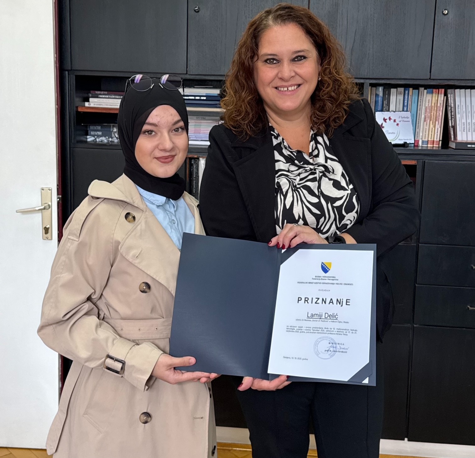 “Vaš rad pokazuje kako znanje, empatija i inovacija mogu zajedno doprinijeti društvenom dobru. Ponosni smo što ste dostojno predstavljale našu zemlju,” kazala je ministrica Duraković.